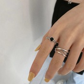 LIVVY シルバーカラー ブラック ラウンド インレイド ジルコン ラインストーン チェーン リング クール レディース オープン Кольцо 指輪 銀 Liv48298686390