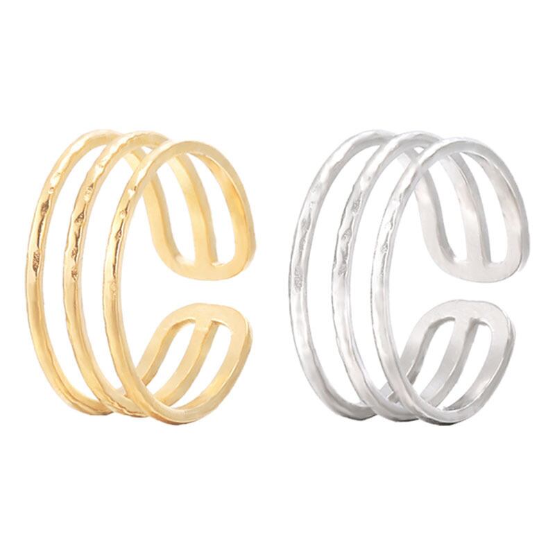 LIVVY シルバーカラーワイドリングトレンディな創造性多層幾何学人差し指リング花嫁ジュエリーギフト マルチレイヤー 指輪 銀 Liv83227897602