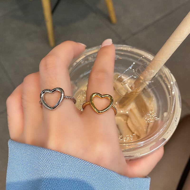 シルバーカラークリエイティブ中空ラブハートスレッドリング女性気質絶妙な手作りバレンタインデーのジュエリー 指輪 銀 Liv6429023665