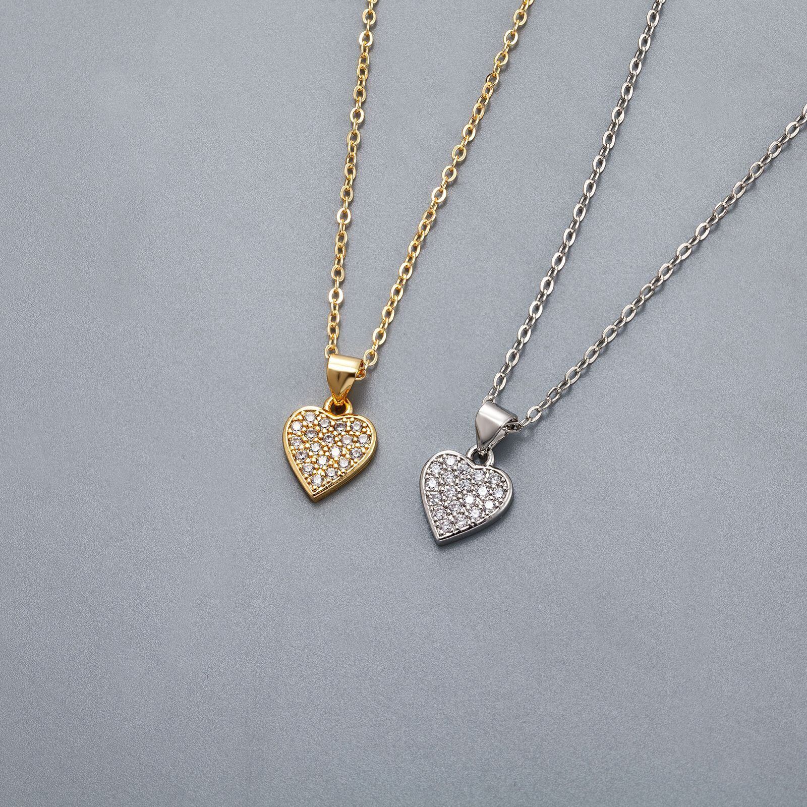LIVVY シルバーカラーシンプルな甘いロマンチックなジルコンハートペンダントネックレス女性記念日ウェディングパーティージュエリーギフト レース 大人ガーリー スウィート キュート カジュアル 銀 Liv59351736593