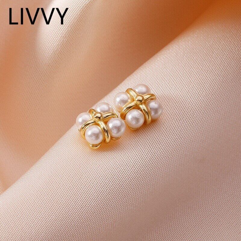 LIVVY シンプルなパールスタッドピアス女性ガールライト高級トレンド気質繊細なかわいいイヤリングジュエリー 大人ガーリー スウィート キュート カジュアル 真珠 指輪 Liv62766966772