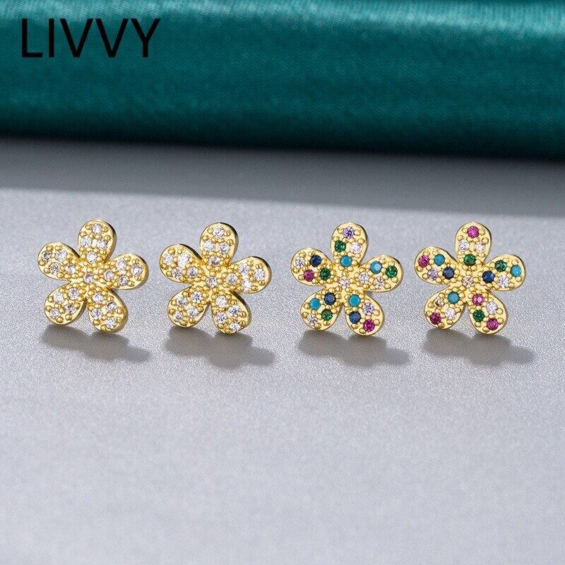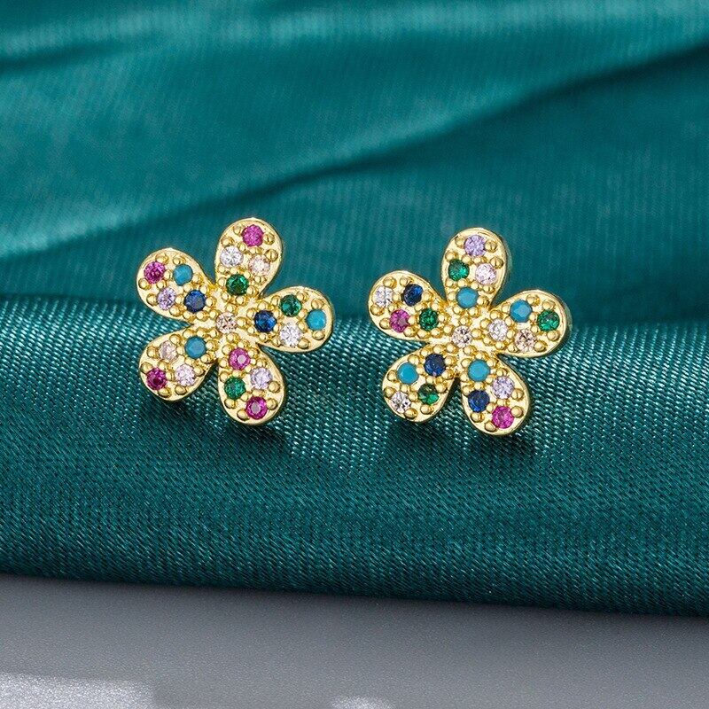 LIVVY 甘いかわいい花カラフルなシャイニージルコン気質耳スタッドピアス女性ガールチャームジュエリーギフト イヤリング 大人ガーリー スウィート キュート カジュアル リング 指輪 フラワーデザイン Liv45426868015