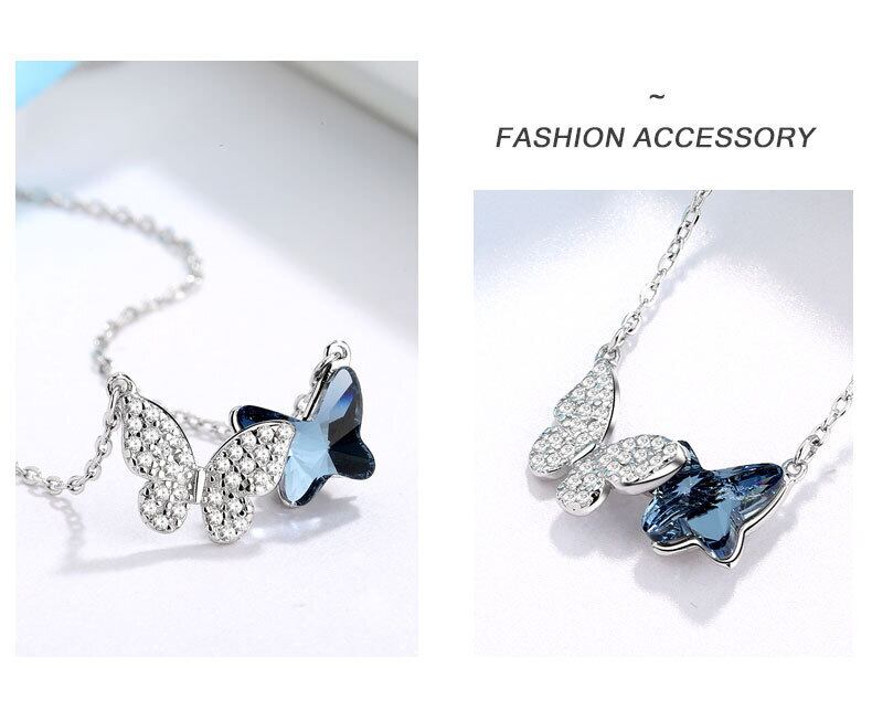 LIVVY シルバーカラーブルーバタフライネックレス女性絶妙なクリエイティブジュエリーギフトアクセサリー レース 銀 Liv7711158195