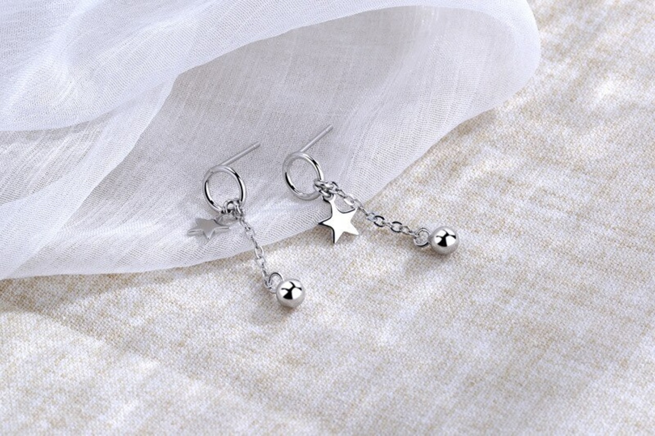 LIVVY シルバーカラートレンディ Tel 五芒星ボールビーズショートイヤリング女性のウェディングジュエリー 指輪 銀 Liv58870237102