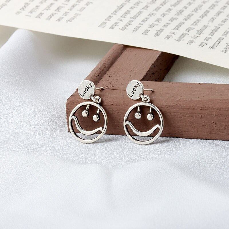 LIVVY シルバーカラーラッキーレター不規則なスマイルフェイススタイルイヤリング女性パンクヒップホップジュエリーアクセサリー 指輪 銀 Liv22514913895