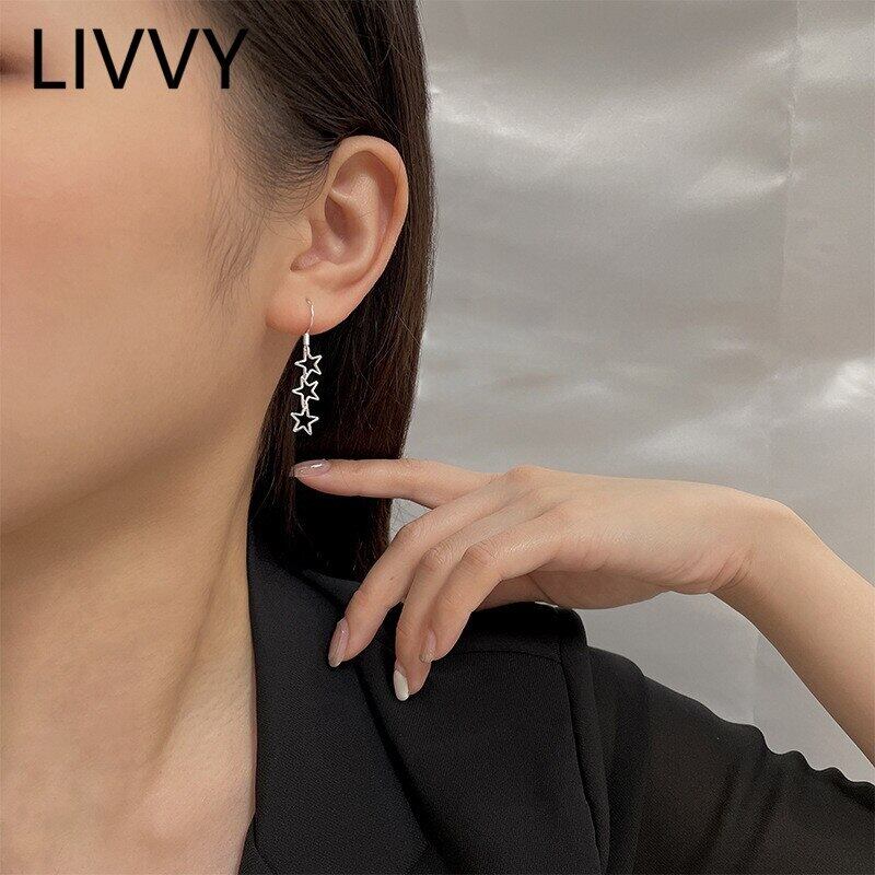 LIVVY シルバーカラースタイル中空 3 スターイヤリング女性ユニークな手作りジュエリーギフト防止アレルギー 指輪 銀 Liv82404447909