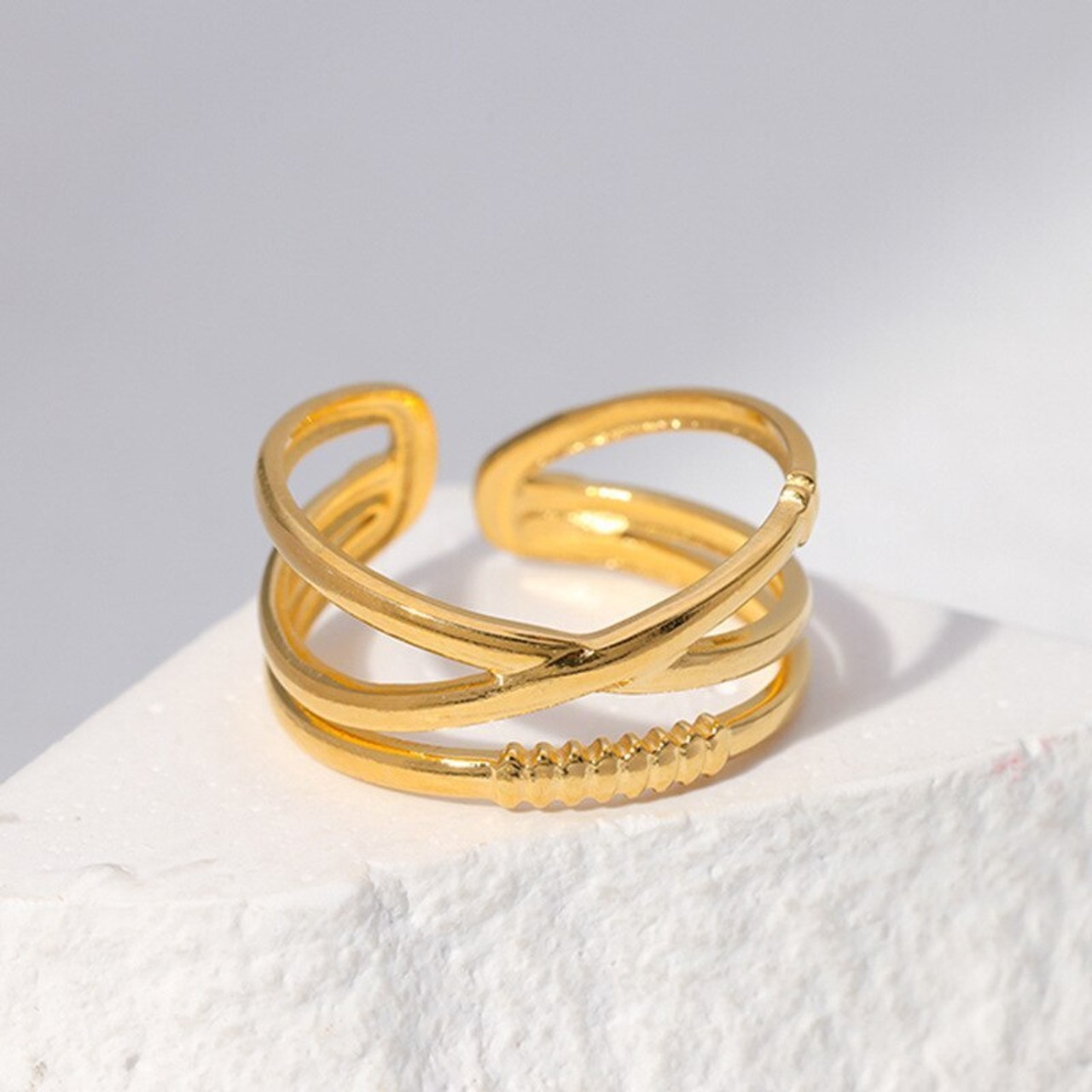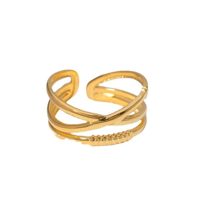 LIVVY 2022 シルバーカラーオープンリングインカップルシンプルな多層クロスパーティージュエリー女性ギフト 指輪 銀 Liv24325436845