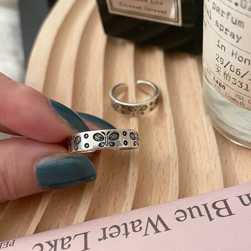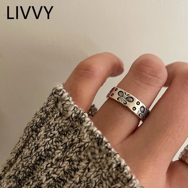 LIVVY シルバーカラークリエイティブ蝶リングレディースメンズハンドメイドパーティージュエリー調節可能 アジャスタブル 指輪 銀 Liv89608730576