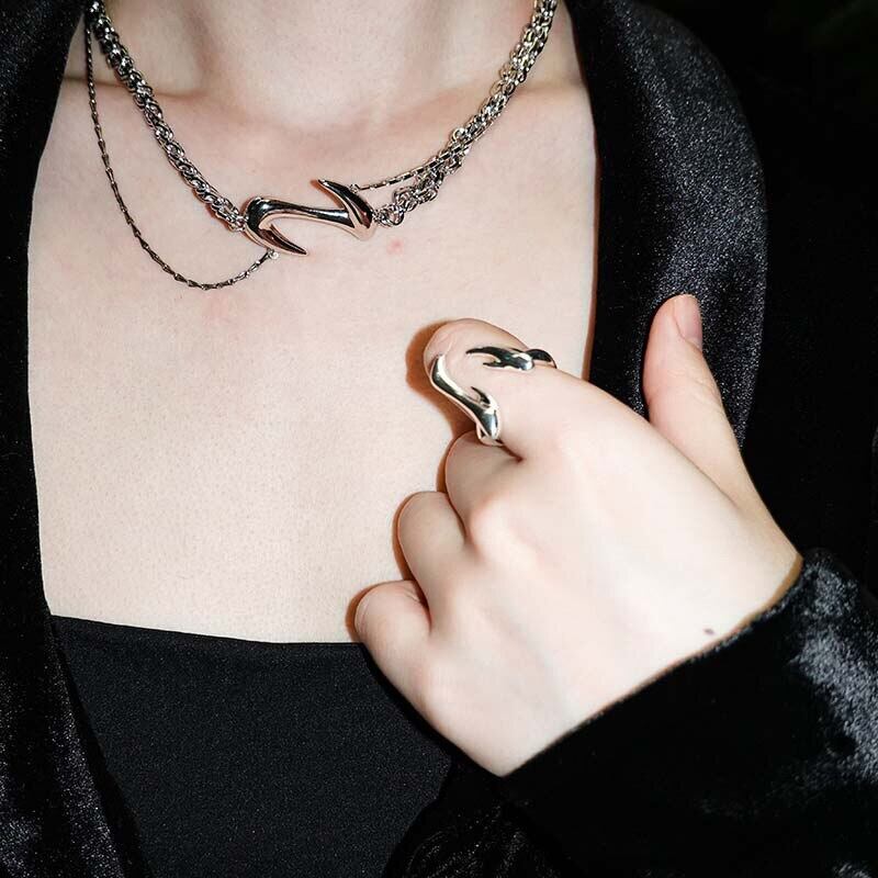 シルバーカラーミニマリストリング女性カップルシンプルなクリエイティブ不規則な幾何学的な手作りパーティージュエリーギフト 指輪 銀 Liv24184979413