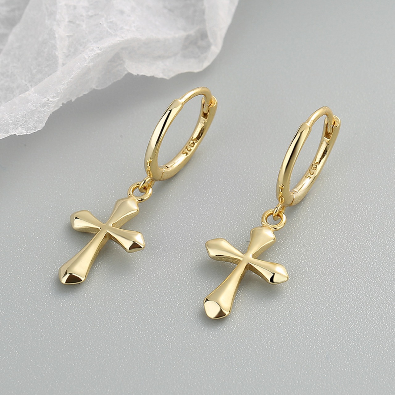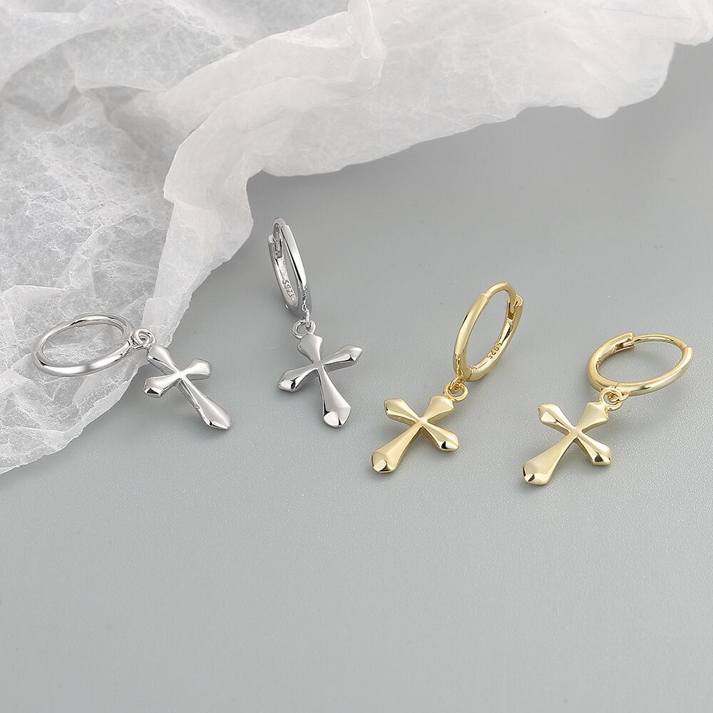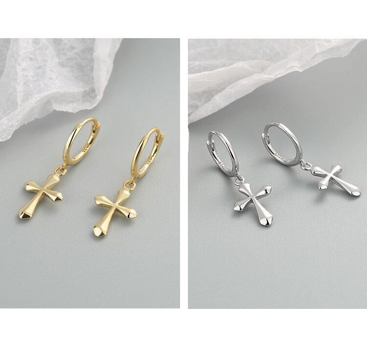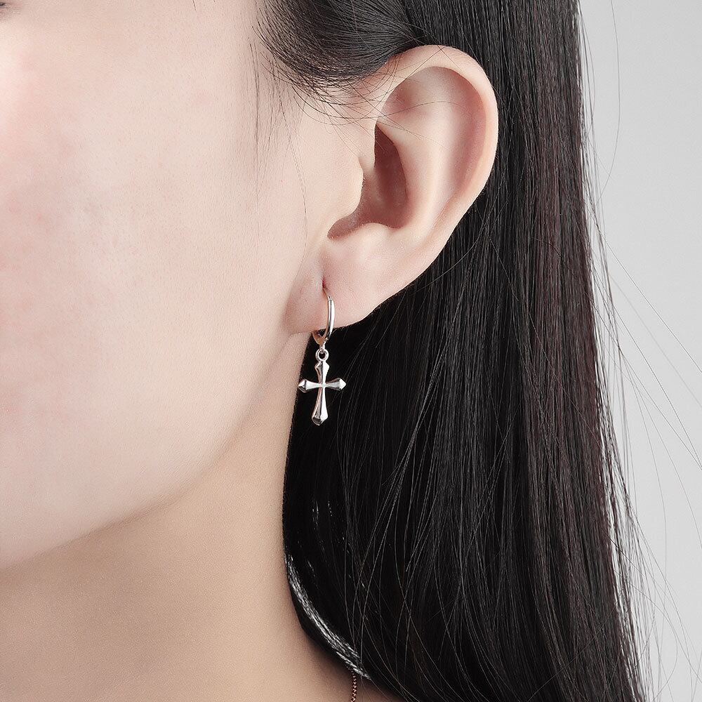 LIVVY シルバーカラーパンクシックなシンプルな洗練されたクロスペンダントイヤリング女性トレンディファインジュエリーギフト 指輪 銀 Liv59705561176