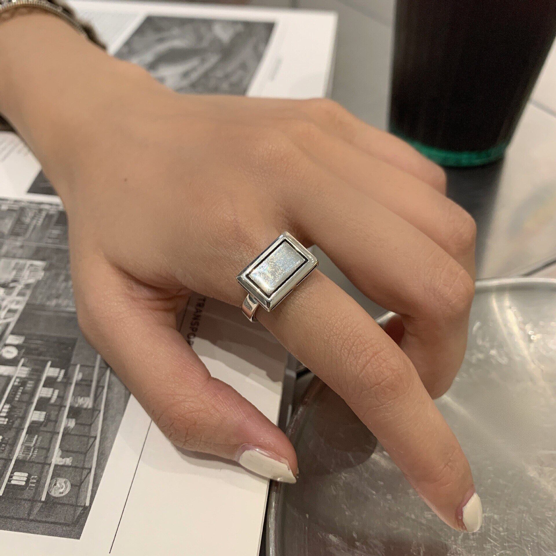 LIVVY シルバーカラーシンプルな幾何学的な長方形のオープンリングレディースメンズパーティートレンディなジュエリーギフト 指輪 銀 Liv43703166095