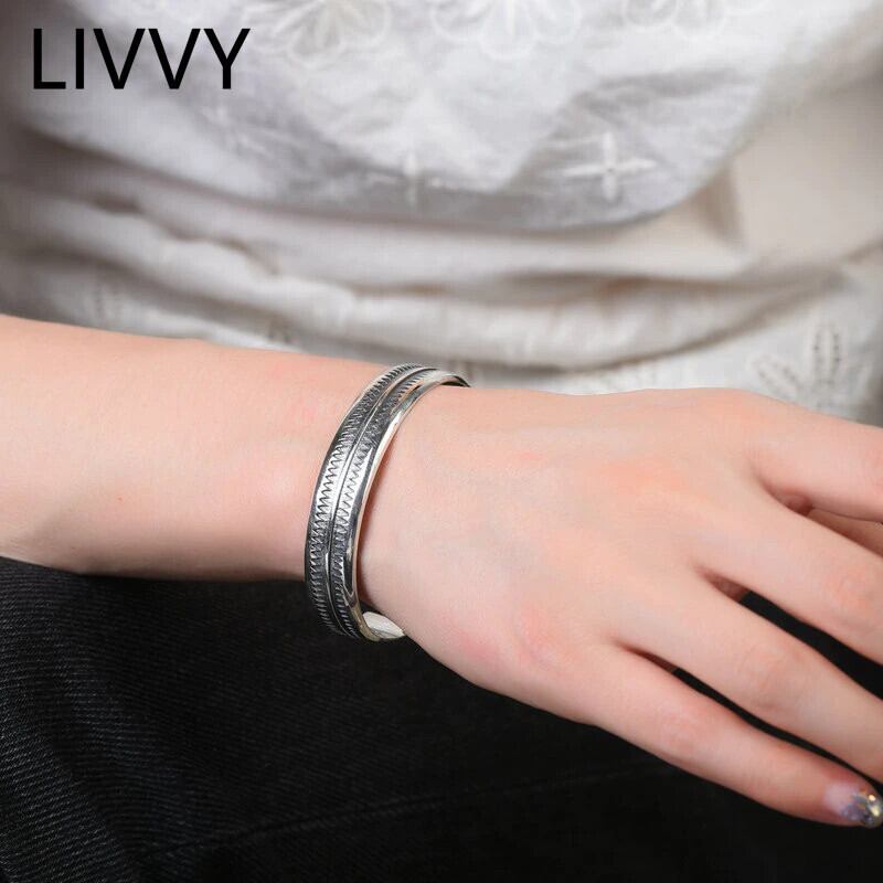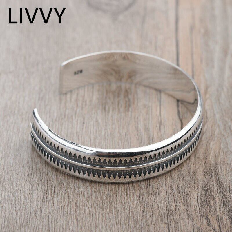 タイシルバーカラー鋸歯状インディアンオープニングブレスレットレディースメンズレトロ気質シンプルジュエリー 銀 Liv30433821271