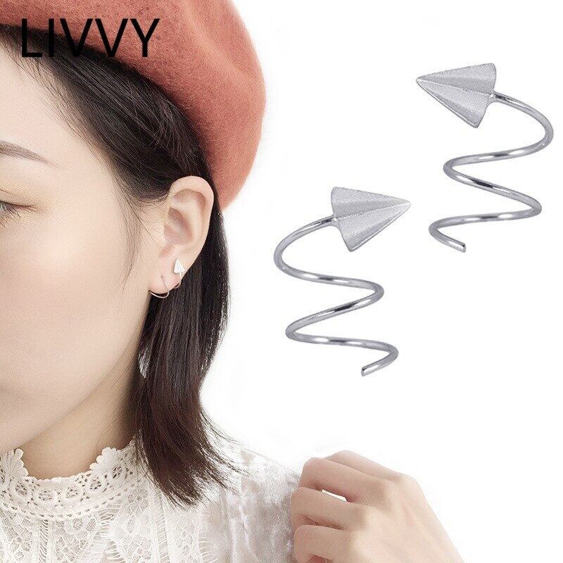 LIVVY シルバーカラー クリエイティブ 幾何学矢印 スパイラルスタッドピアス アレルギー防止 ジュエリー レディース イヤリング リング 指輪 銀 Liv98191224636