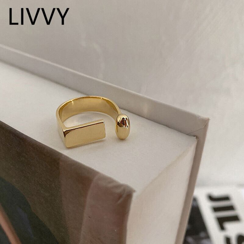 LIVVY シルバーカラーヨーロピアンスムーズカーブレトロ潮流リング女性ミニマリスト不規則なゴールドリングジュエリー 指輪 銀 Liv35950714729