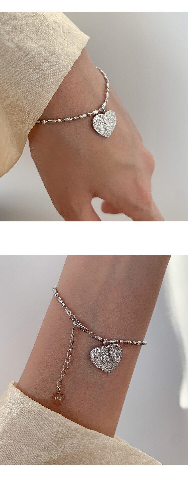 LIVVY シルバーカラーシャイニーラブハートビーズチェーンブレスレット女性ホット高級手作りバレンタインデーのギフトウェディングジュエリー 銀 Liv14779908719