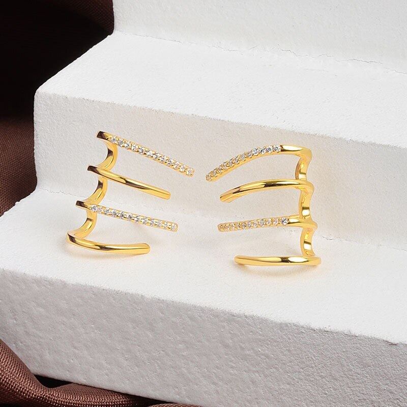 LIVVY シルバーカラー多層ジルコンイヤリングチャーム女性トレンディジュエリーシンプルなレトロパーティーアクセサリーギフト マルチレイヤー 指輪 銀 Liv98830478400