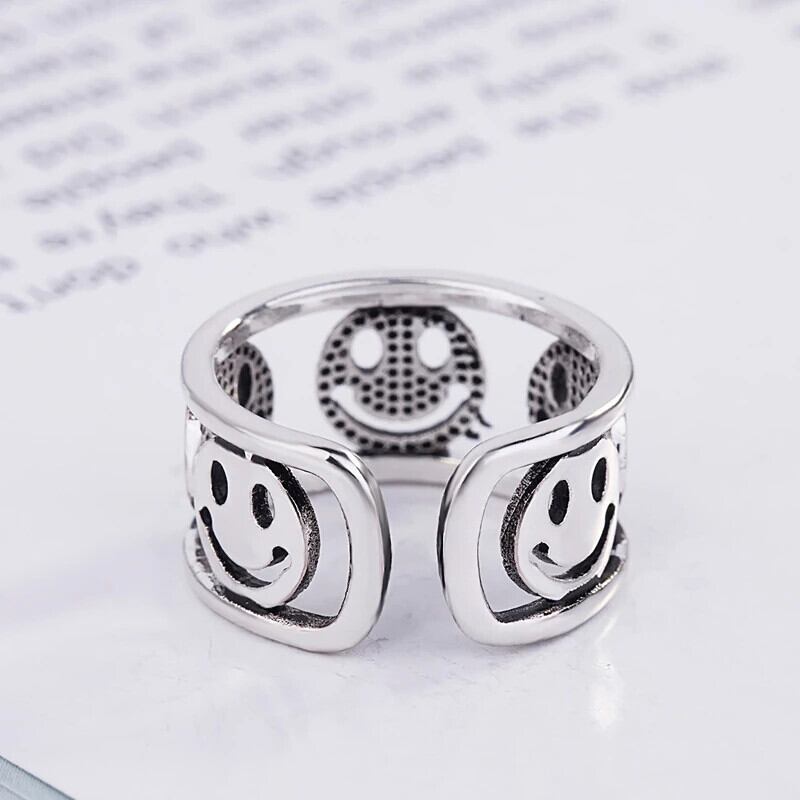 LIVVY シルバーカラーパンクスタイルのパーティージュエリー女性愛好家クリエイティブ幾何学スマイルフェイスオープニングリング 指輪 銀 Liv74319247356