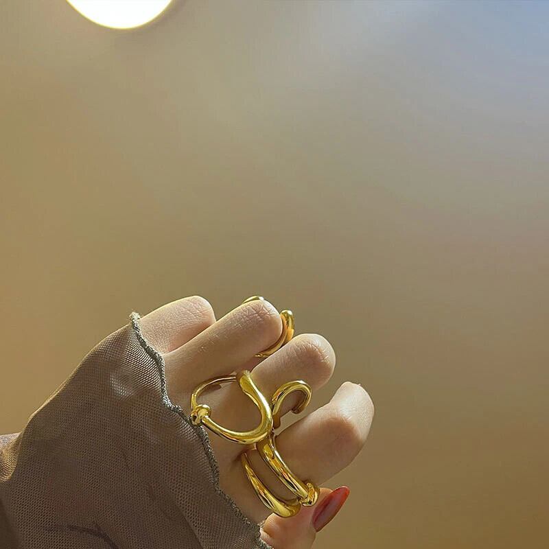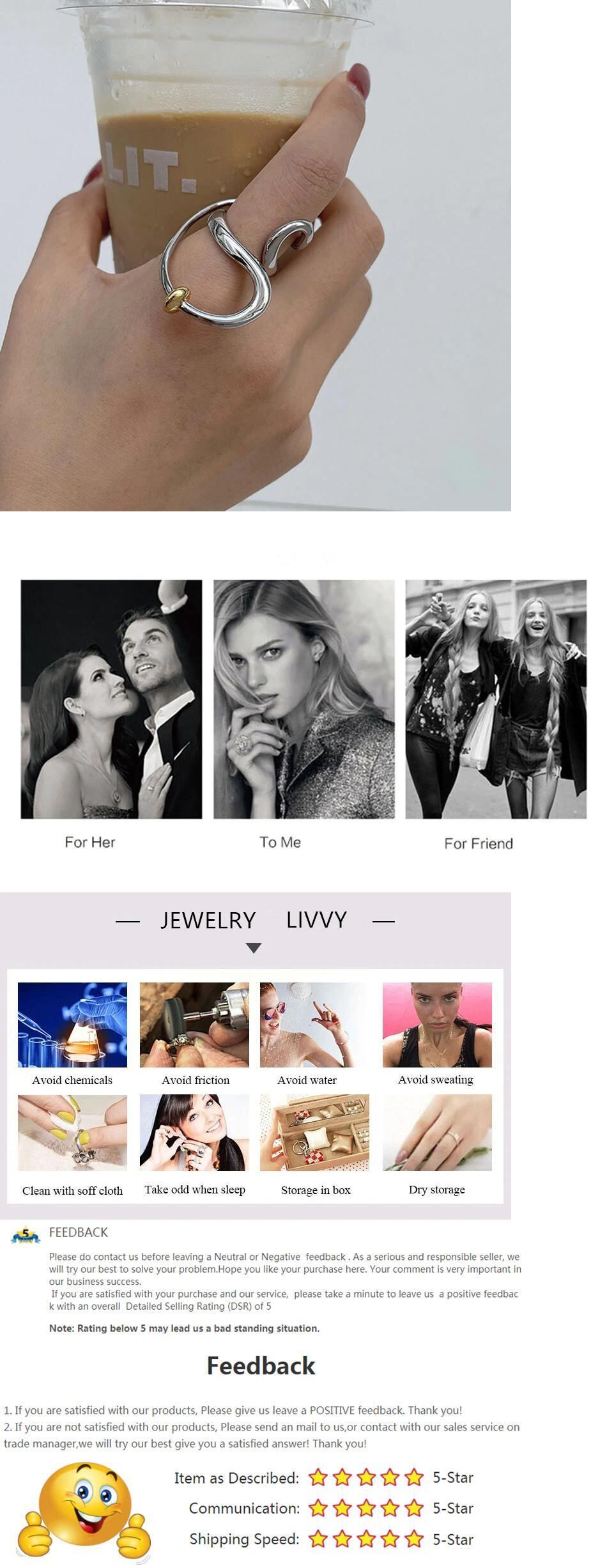 LIVVY 誇張シンプルなライン不規則なツイスト調節可能なリング女性の人格-品質のシルバーカラージュエリー アジャスタブル 指輪 銀 Liv31592650292