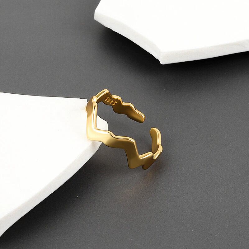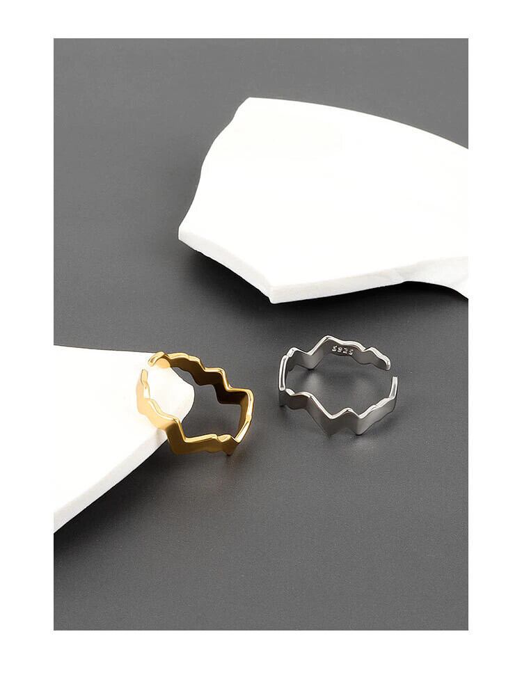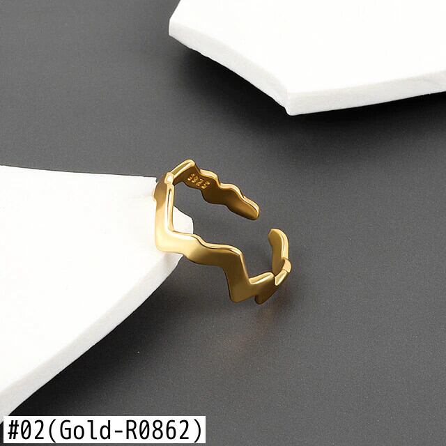 LIVVY ミニマリストシルバーカラー不規則波リング女性サイズ変更可能な手作りジュエリーギフト 指輪 銀 Liv87947155172
