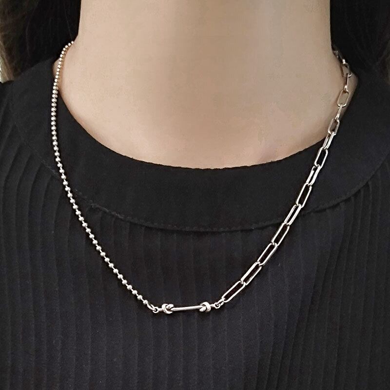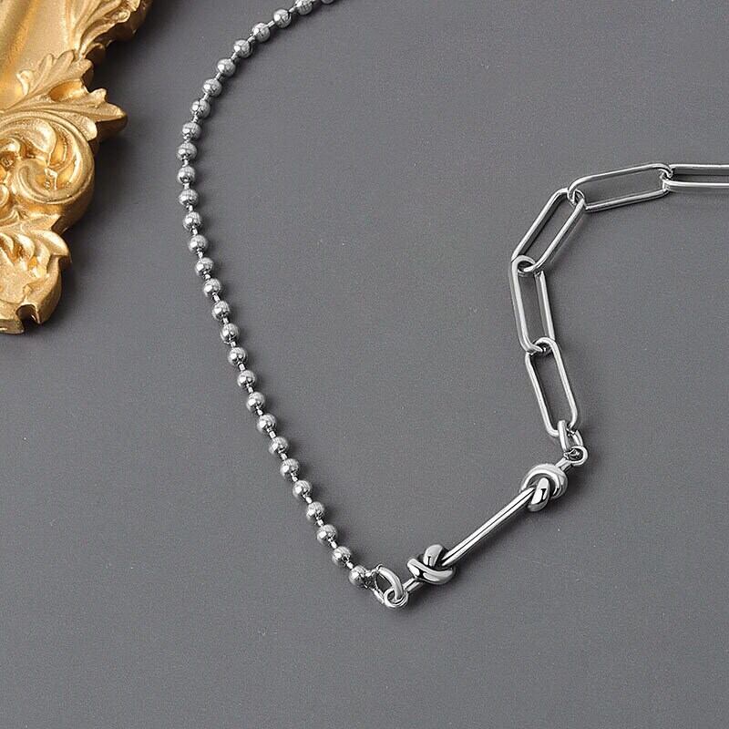 LIVVY シルバーカラー結び目ネックレス気質シンプルなジュエリー女性男性パーティージュエリーギフト レース 銀 Liv38038809733