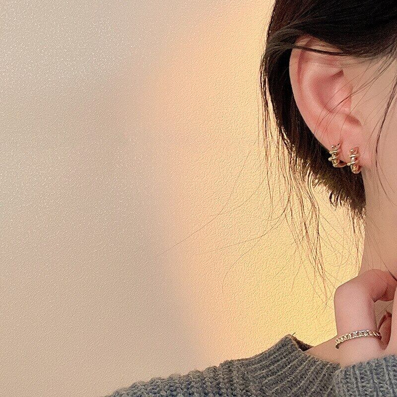 LIVVY 2022 ホットシルバー色の針巻きツイストフープイヤリング女性ガールトレンドクールパーティージュエリーギフト 指輪 銀 Liv37073713888