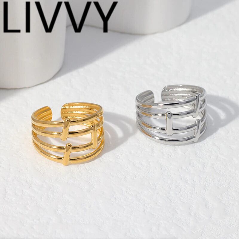 LIVVY シルバーカラーシンプルなパンクワイドリングカップルクリエイティブ多層ジオメトリ手作り女性パーティージュエリーギフト マルチレイヤー 指輪 銀 Liv19514471054
