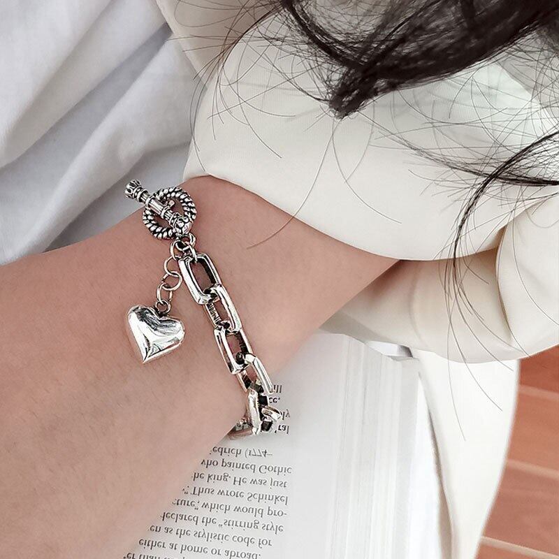 LIVVY ホットバックルタイシルバーカラーラブハートペンダントブレスレット女性パーティージュエリー 銀 Liv47685149902