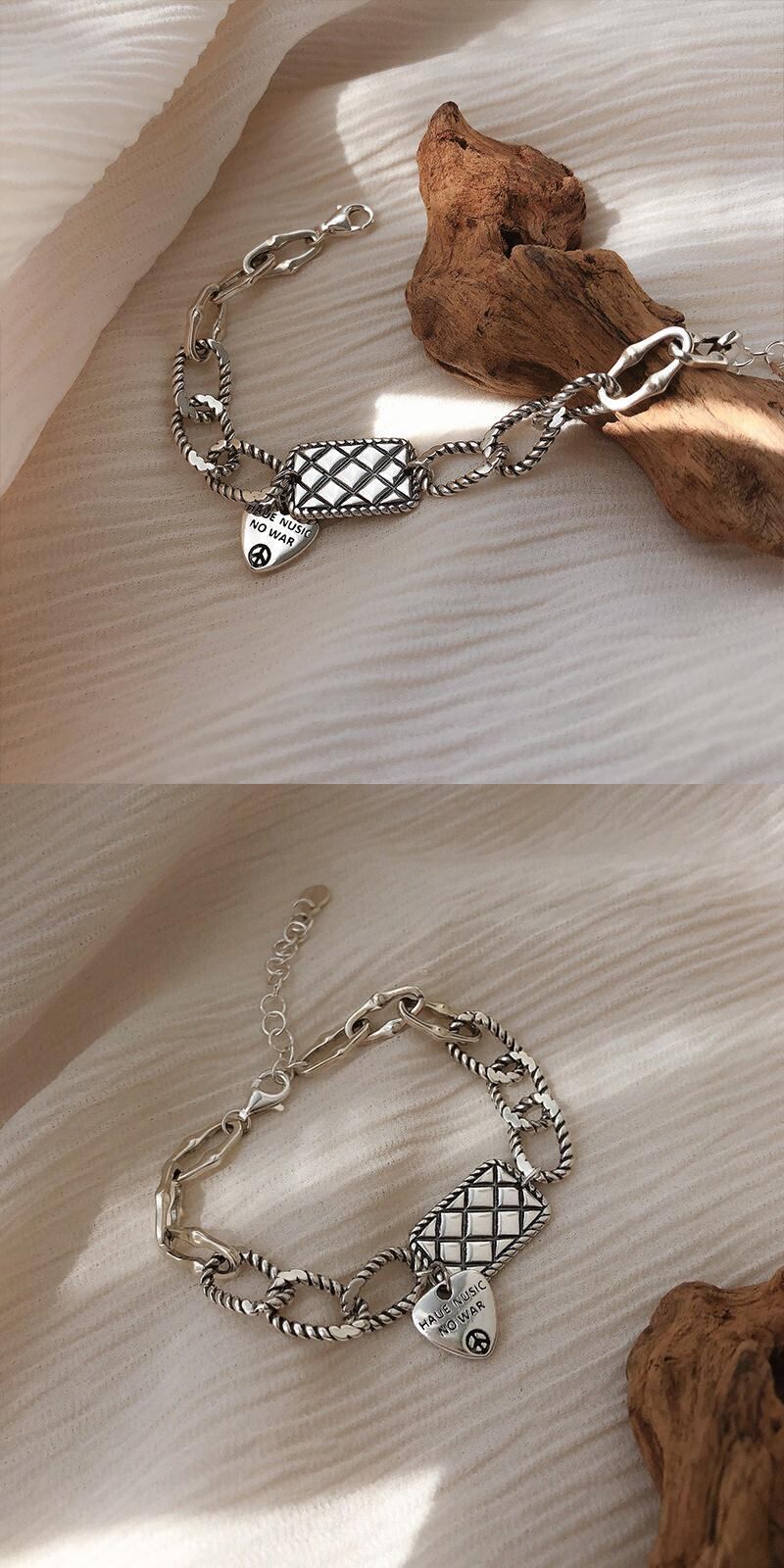 LIVVY タイシルバーカラー英字ペンダント Brcacelet 女性パンク気質ジュエリー誕生日ギフト 銀 Liv37191014536