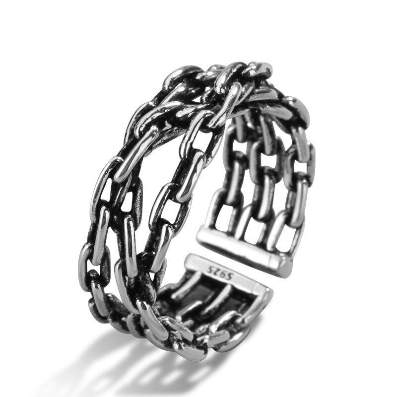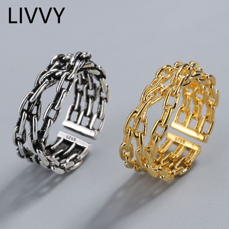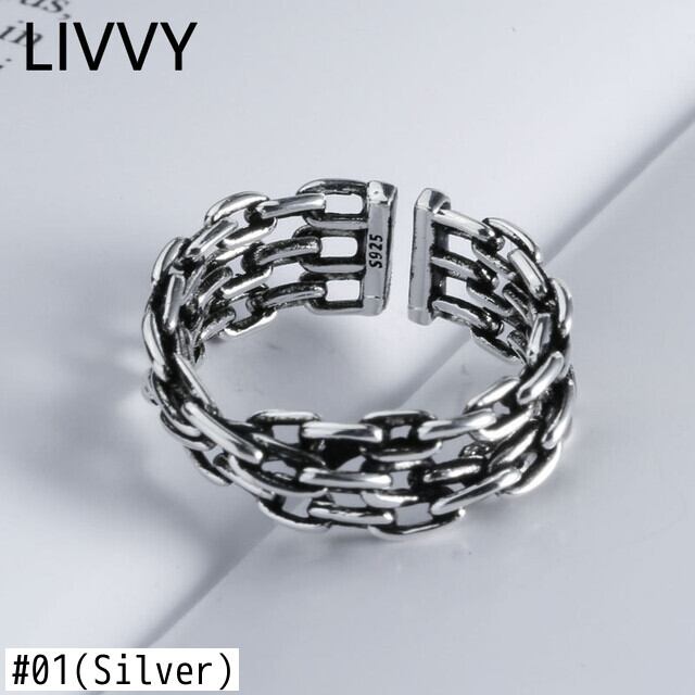 LIVVY シルバーカラーオープニング編組ストリップリングチェーンアンティークリングシルバージュエリー女性 2021 トレンド 指輪 銀 Liv70194058556