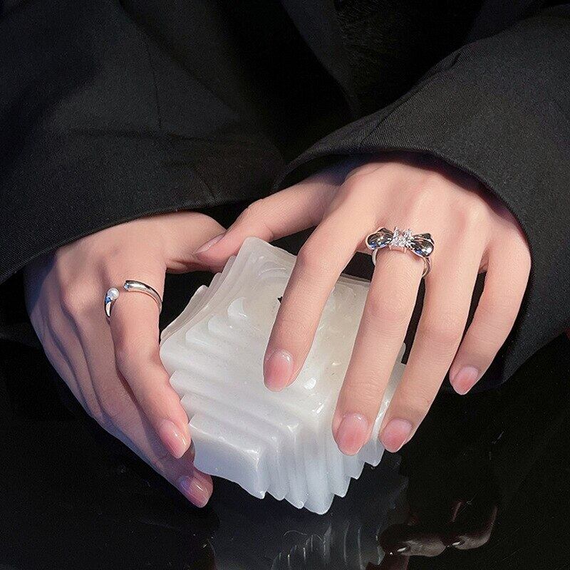 LIVVY シルバーカラーちょう結び幾何学スパークリングジルコンリング女性花嫁ジュエリーパーティーアクセサリーギフト リボン 指輪 銀 Liv66139330926