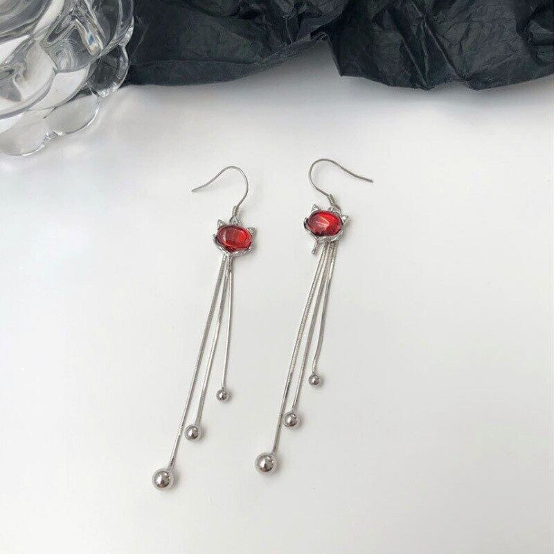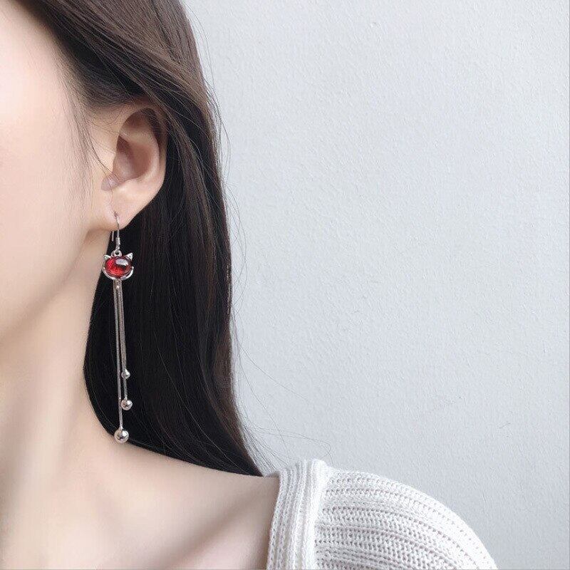 LIVVY シルバーカラー潮レッドオパールキツネ電話シルバーカラーフックイヤリング女性ライト高級トレンディなゴージャスなパーティージュエリー 蛋白石 指輪 銀 Liv74221488448