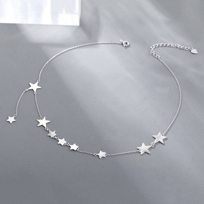 LIVVY シルバーカラーのロマンチックなマルチスターネックレス珍味ショートチェーン女性女の子の誕生日パーティーの宝石類のギフト レース 銀 Liv36286825619