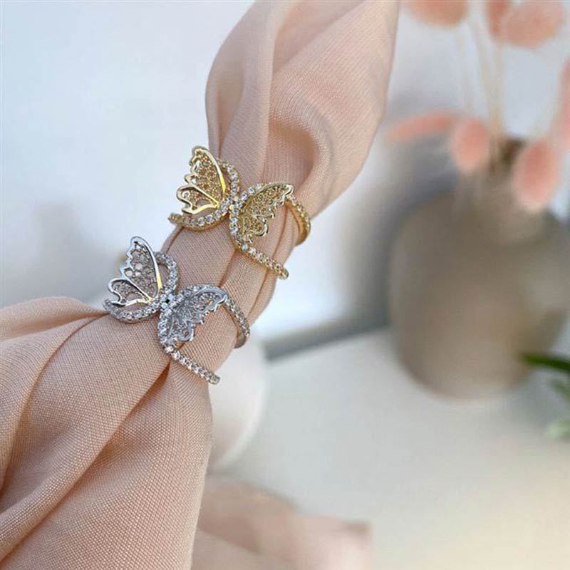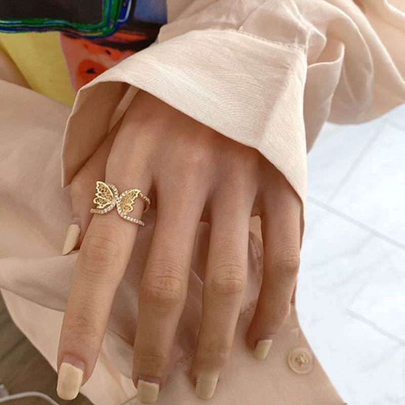 LIVVY シルバーカラーバタフライマイクロ象嵌シャイニージルコンリングオープントレンド気質ジュエリーギフト 指輪 銀 Liv91537904767