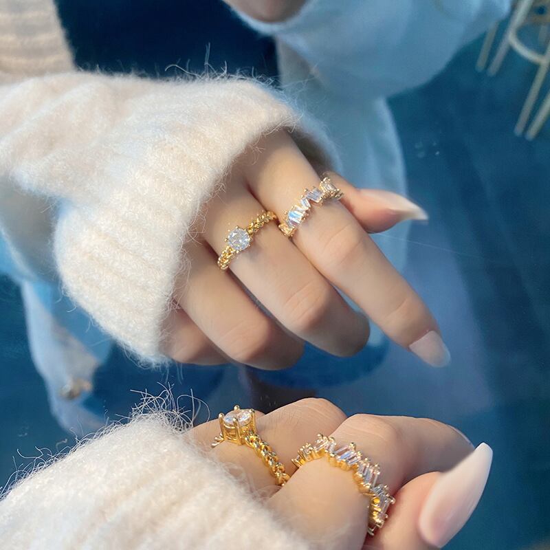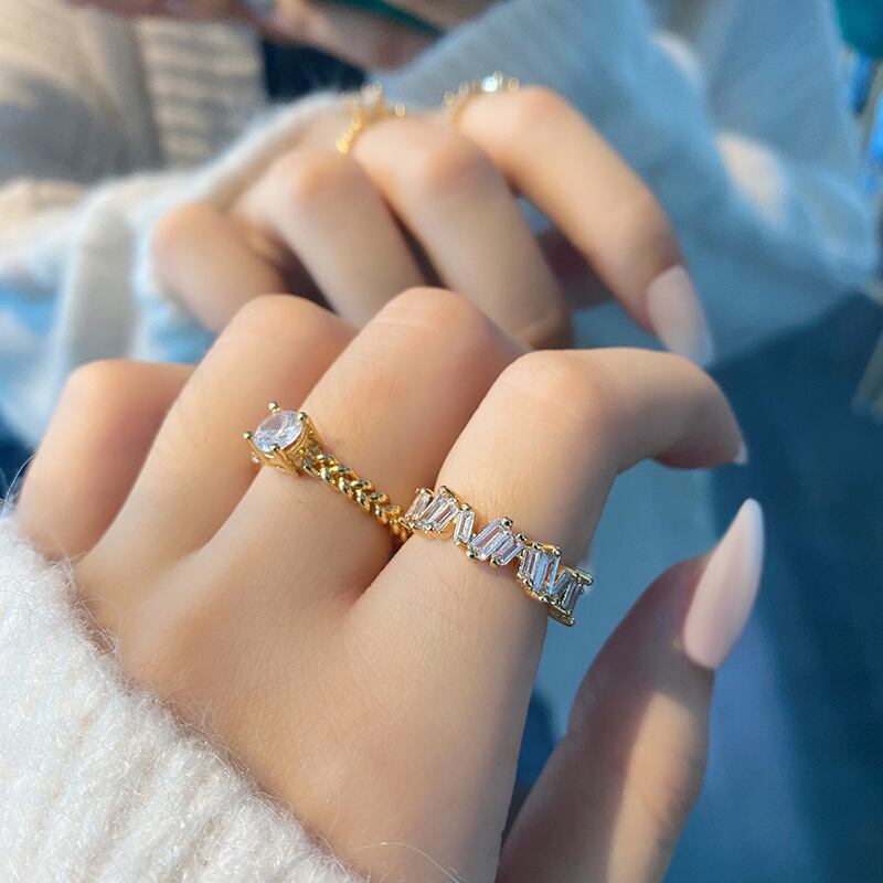 LIVVY クリエイティブ クリスタル ジルコン オープン リング Weman シンプル 絶妙 ジュエリー アクセサリー 指輪 Liv59724991534