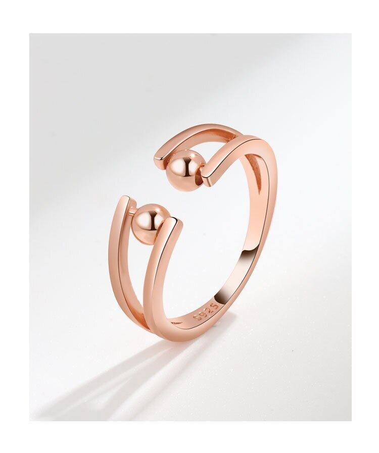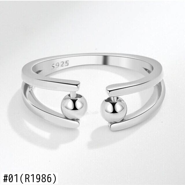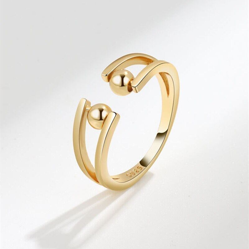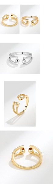 LIVVY シルバーカラーシンプルなクリエイティブダブルボールビーズオープン調節可能なリング女性トレンドジュエリーパーティーギフト アジャスタブル 指輪 銀 Liv68555758751