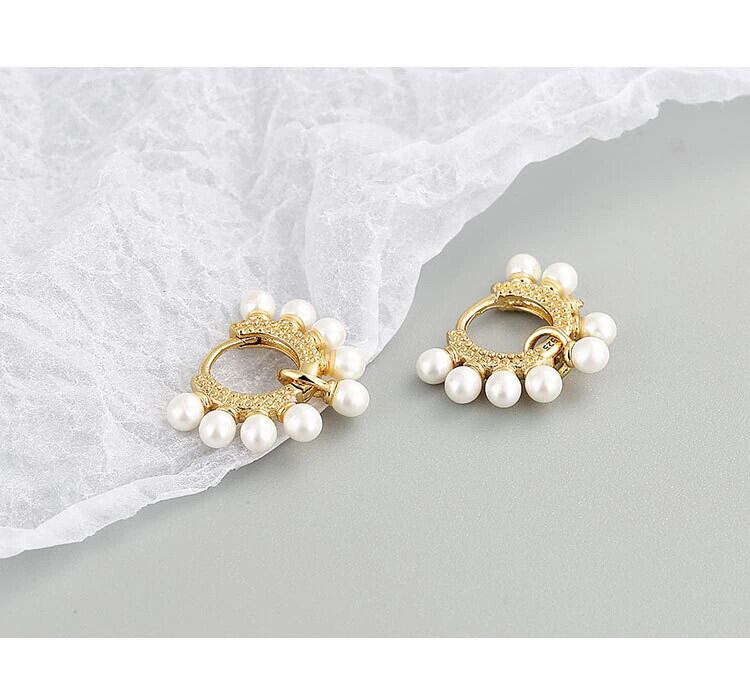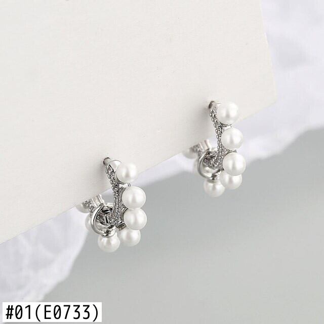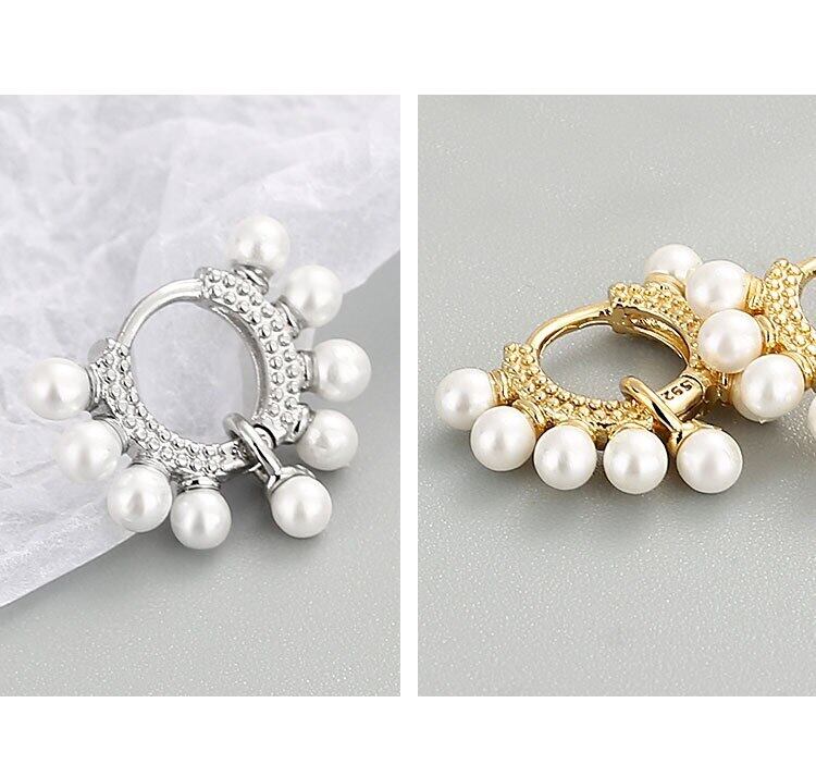 LIVVY シルバーカラー 2021 ラウンドビッグパールフープイヤリング女性レトロパーティージュエリー 真珠 指輪 銀 Liv82356455486