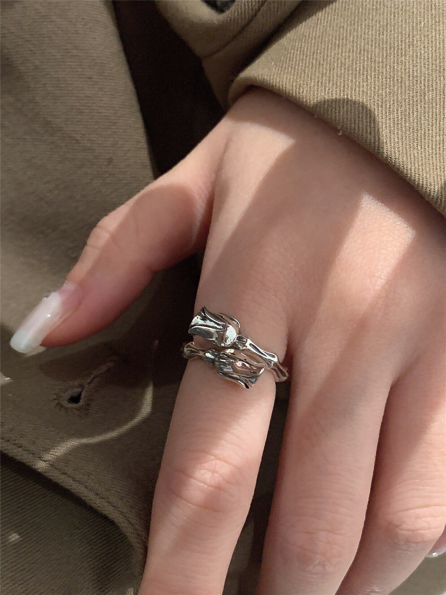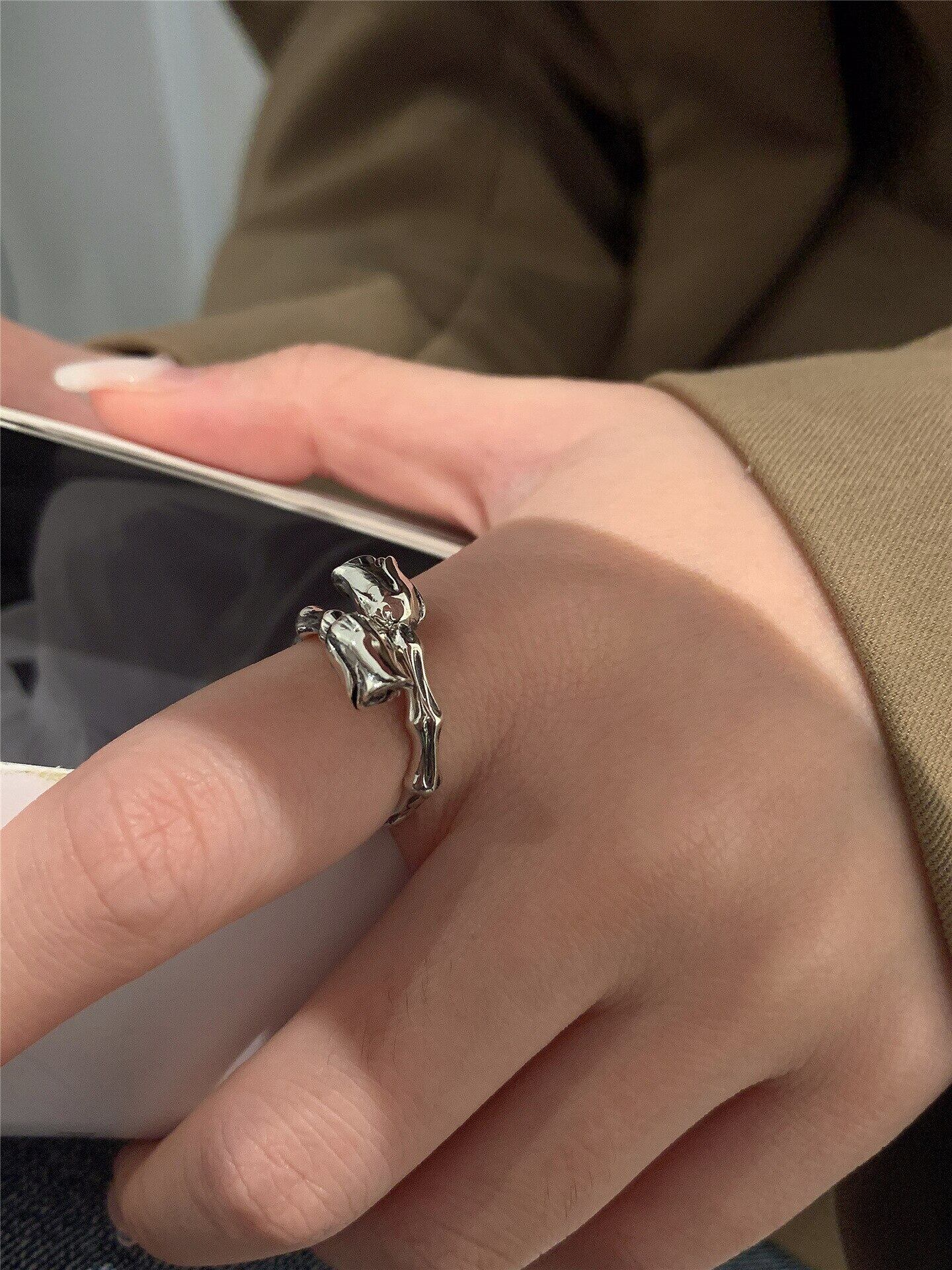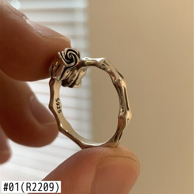 LIVVY シルバーカラー ローズフラワーリング レディース カップル ハンドメイド パーティー ジュエリー ギフト 指輪 フラワーデザイン 銀 Liv74284538167
