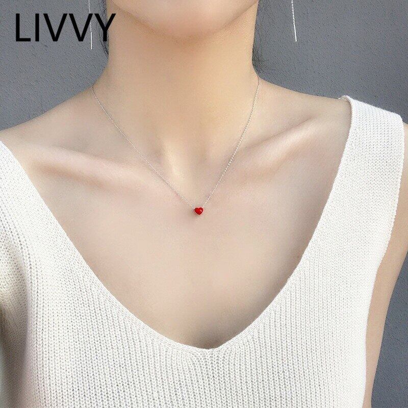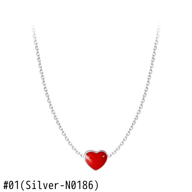 LIVVY シルバーカラー キュート レッド ハート ペンダント ネックレス トレンディ シンプル パーティー ジュエリー レディース レース 大人ガーリー スウィート カジュアル 銀 Liv37617895174