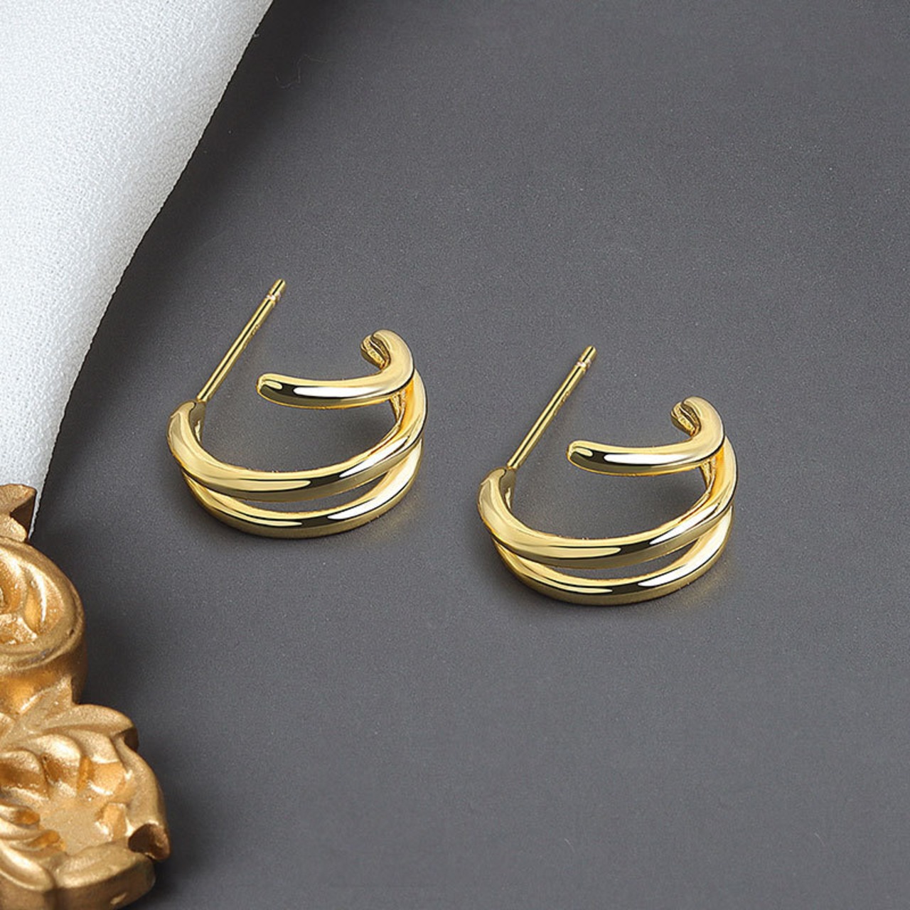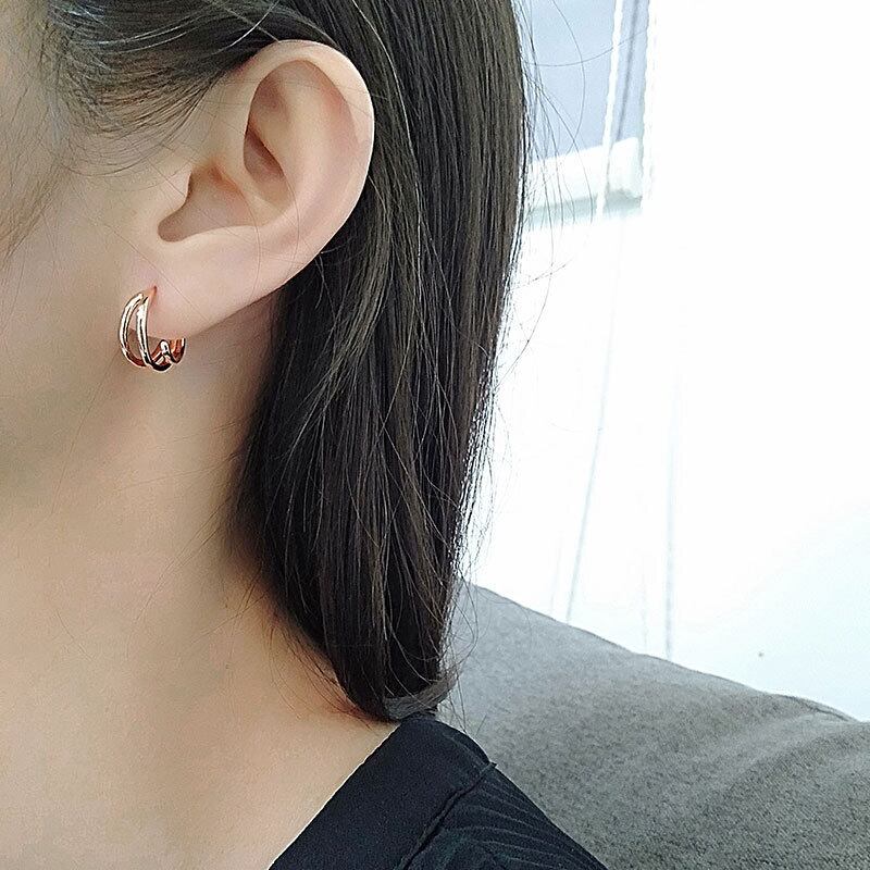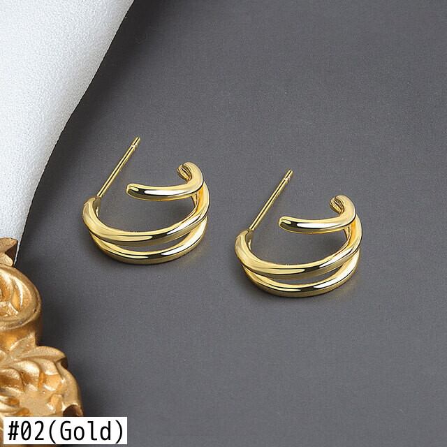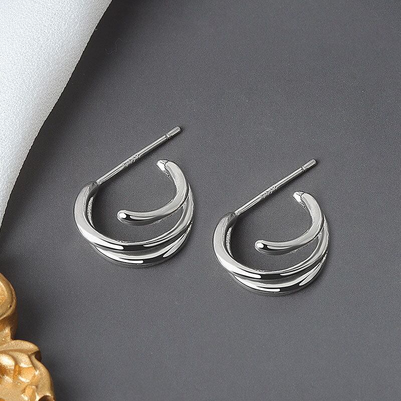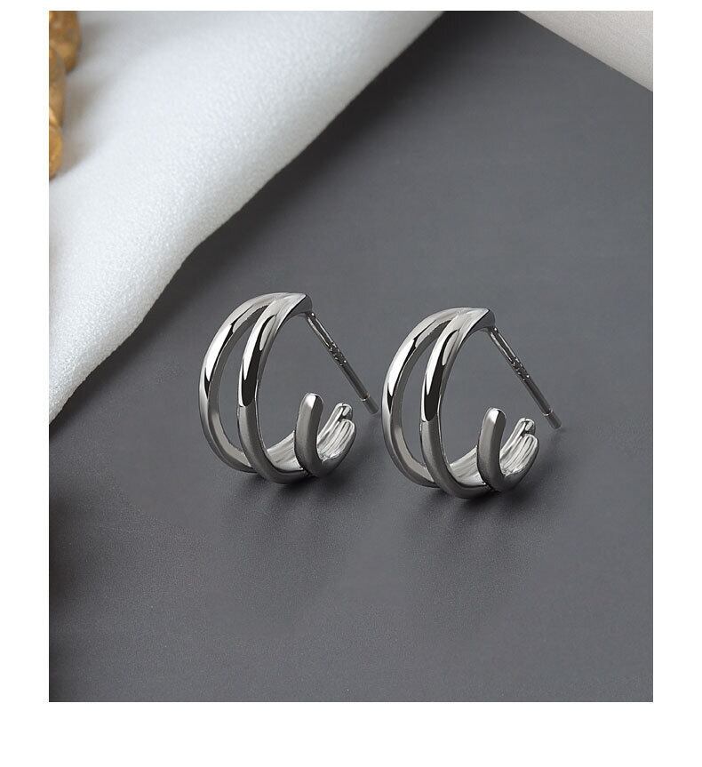 LIVVY シルバーカラー防止アレルギートレンディなイヤリング女性カップルシンプルな多層ライン手作りジュエリー 指輪 銀 Liv83488585586