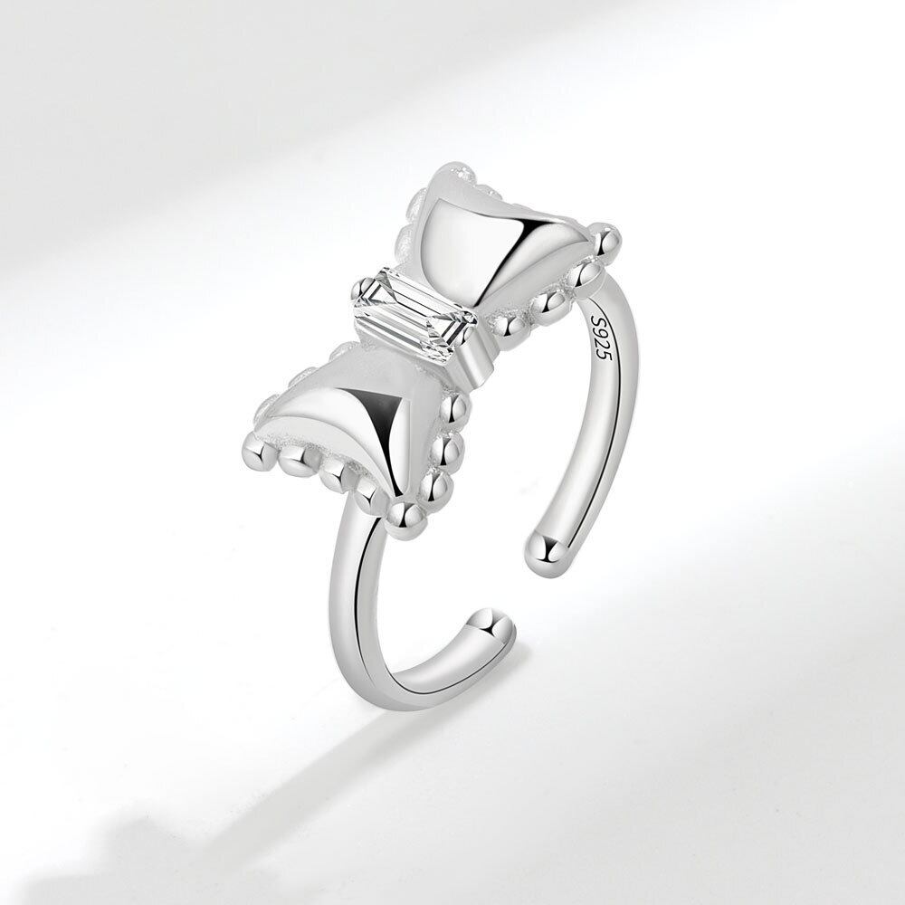 LIVVY シルバーカラー愛のハートリング女性インクリエイティブちょう結びジルコン幾何珍味アクセサリーギフト リボン 指輪 銀 Liv60467711513