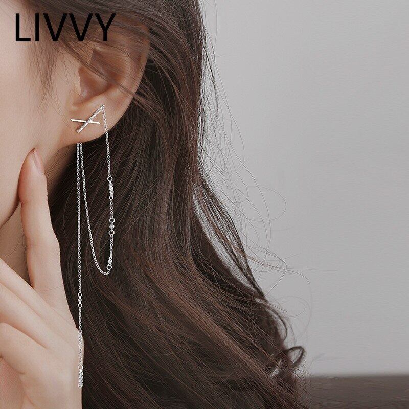 LIVVY 2022 シルバーカラー象眼クロスロング Tel イヤリング女性ファインジュエリーギフトアクセサリー 指輪 銀 Liv46983427927