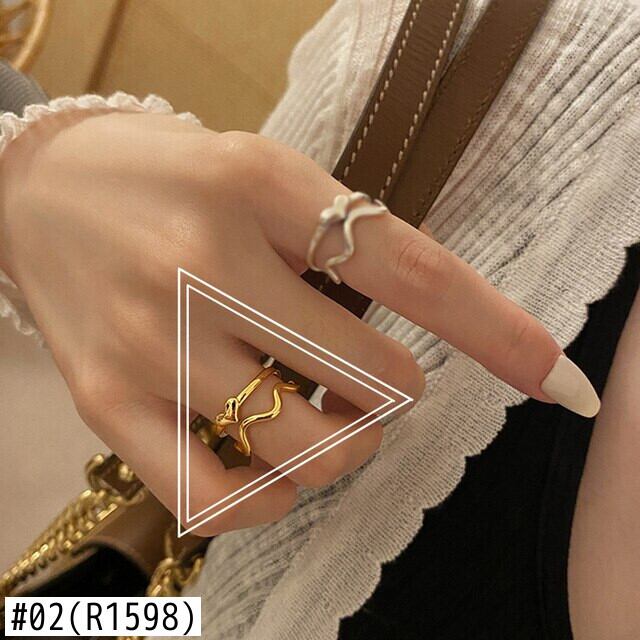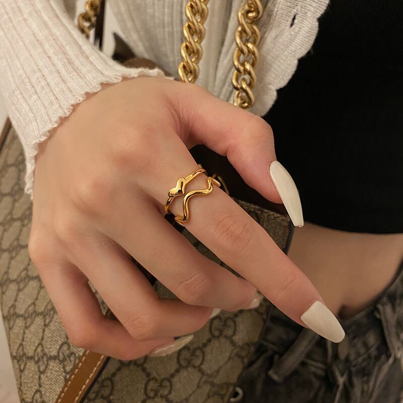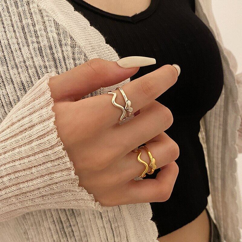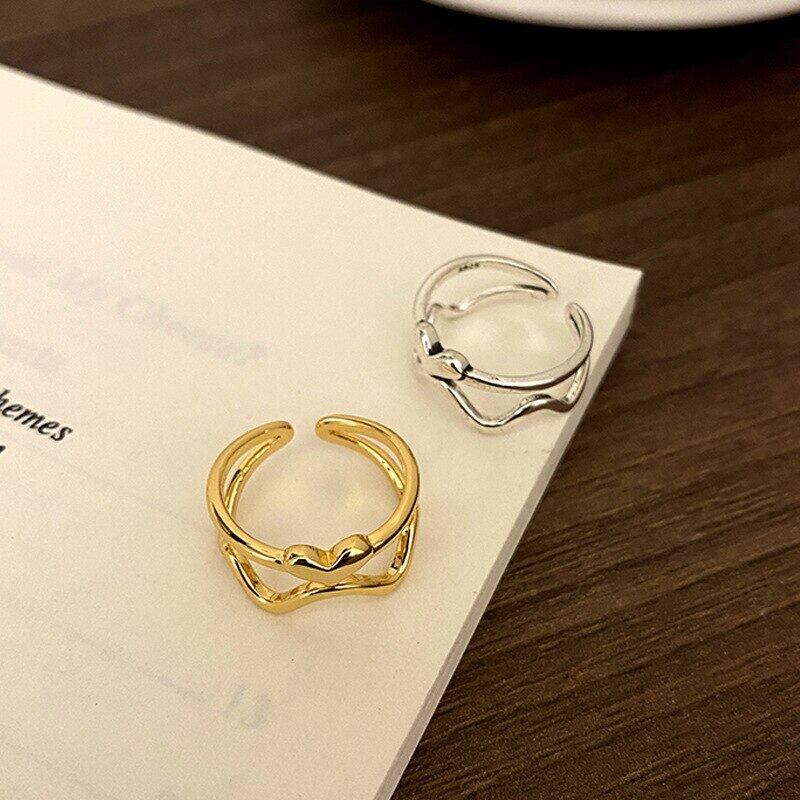 LIVVY シルバーカラースタイル二層波状曲線不規則な愛のハートリング滑らかなロマンチックなジュエリー調節可能 アジャスタブル 指輪 銀 Liv95837308994