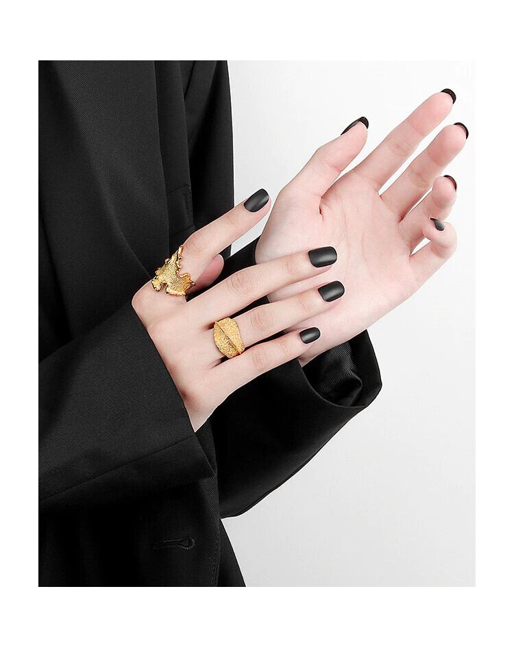 LIVVY スズ箔ゴールドワイドリング女性シルバー色不規則な表面トレンディなジュエリーパーティーギフト 指輪 銀 Liv54449126511