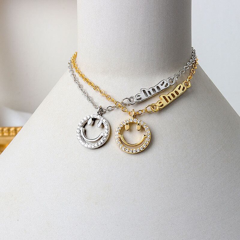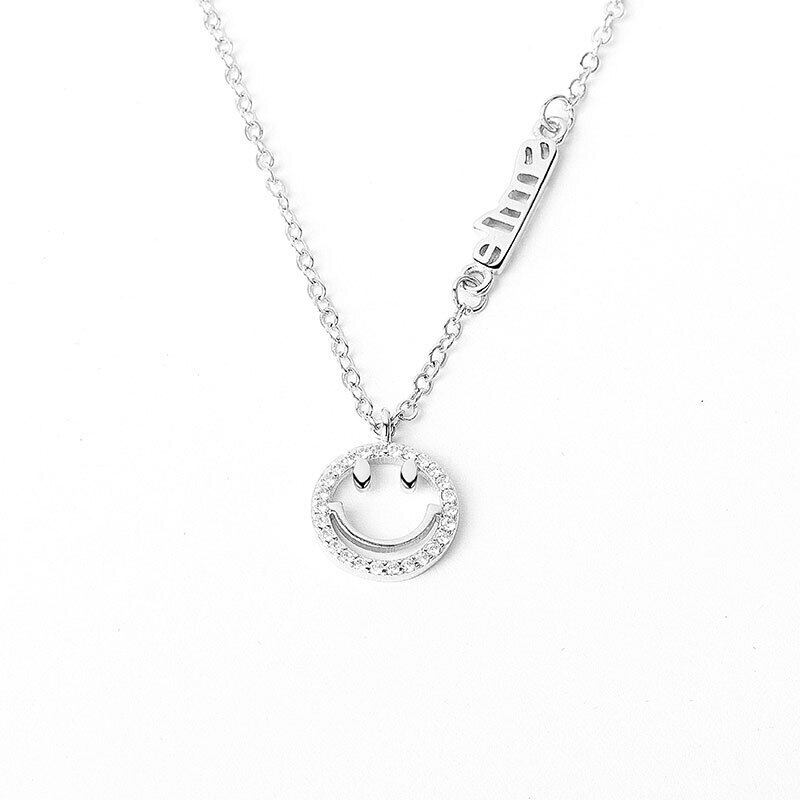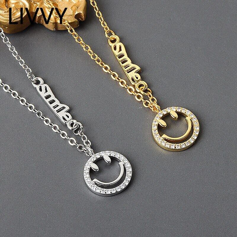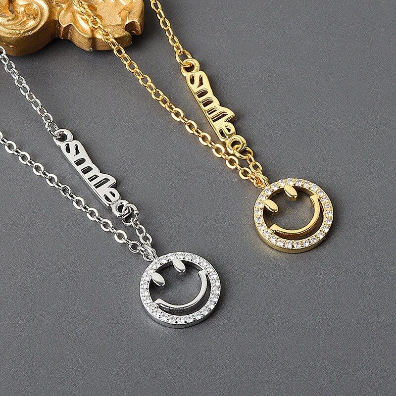 LIVVY シルバーカラーの笑顔文字ネックレス女性ジルコンのウェディングパーティーの誕生日ファインジュエリー レース 銀 Liv55931188083