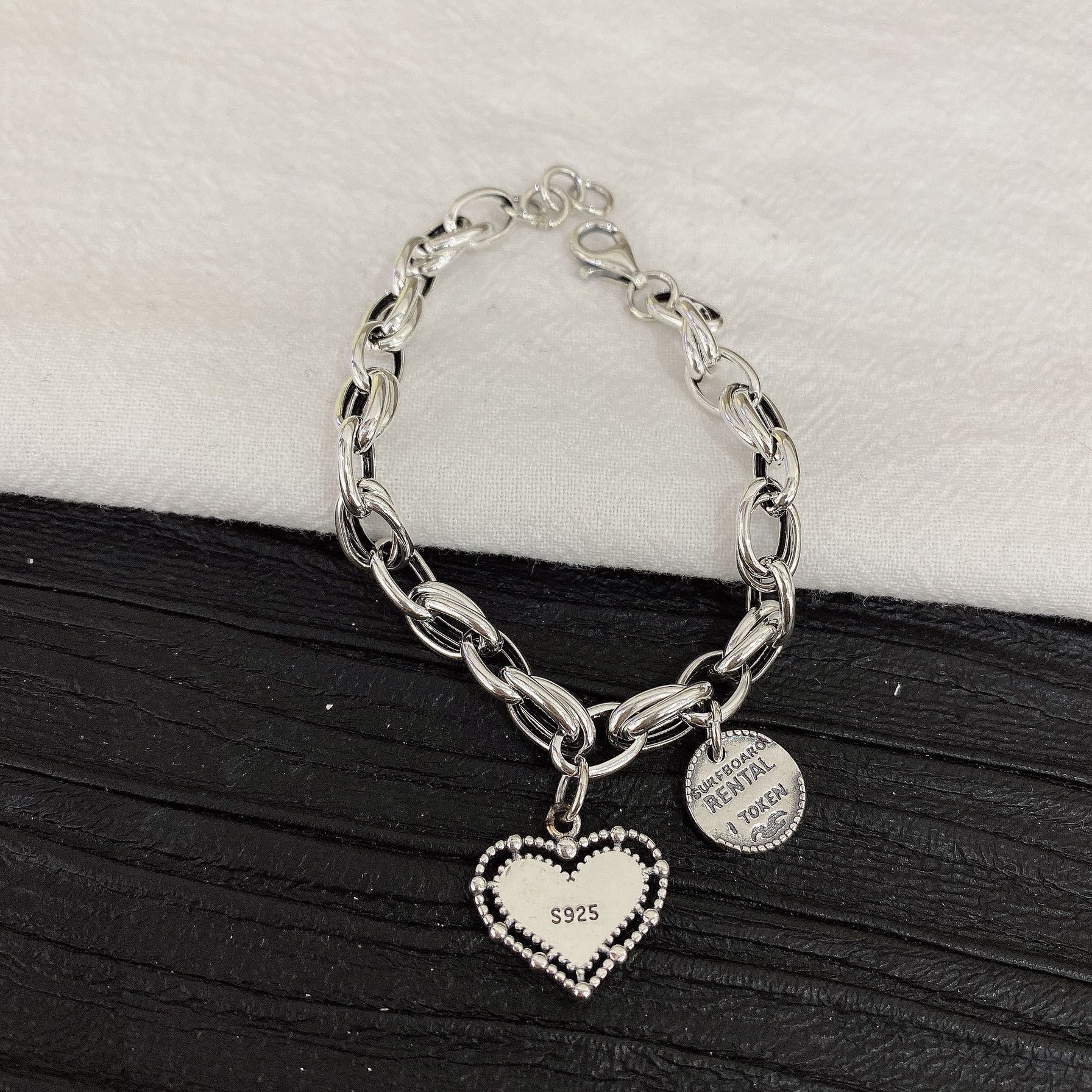 LIVVY タイシルバーカラーラブハートラウンド英字ペンダントブレスレット女性ユニークなレトロな高級ジュエリーギフト 銀 Liv40223091416