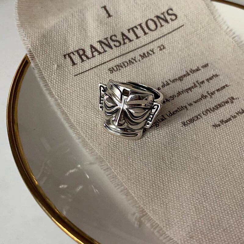 LIVVY シルバーカラークリエイティブポートレート顔ワイドリングゴシックパンク指リング男性女性ジュエリー調整可能 アジャスタブル 指輪 銀 Liv68149007864