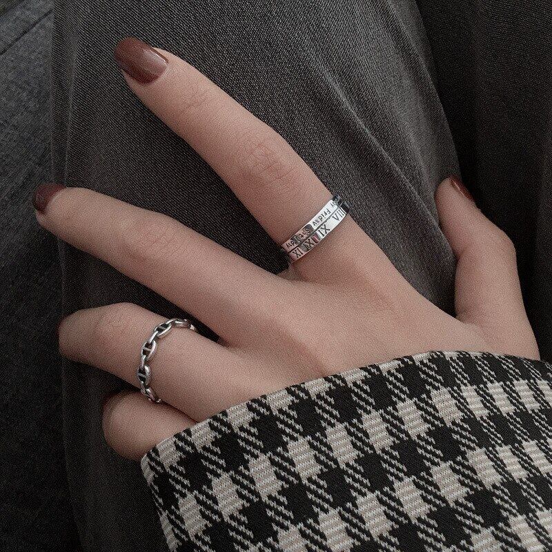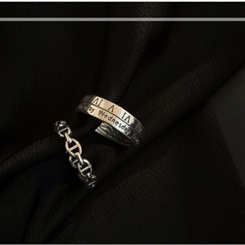 LIVVY シルバーカラーミニマリスト不規則な手紙オープンリング女性中空幾何チェーン誕生日ジュエリーギフト 指輪 銀 Liv55420680764