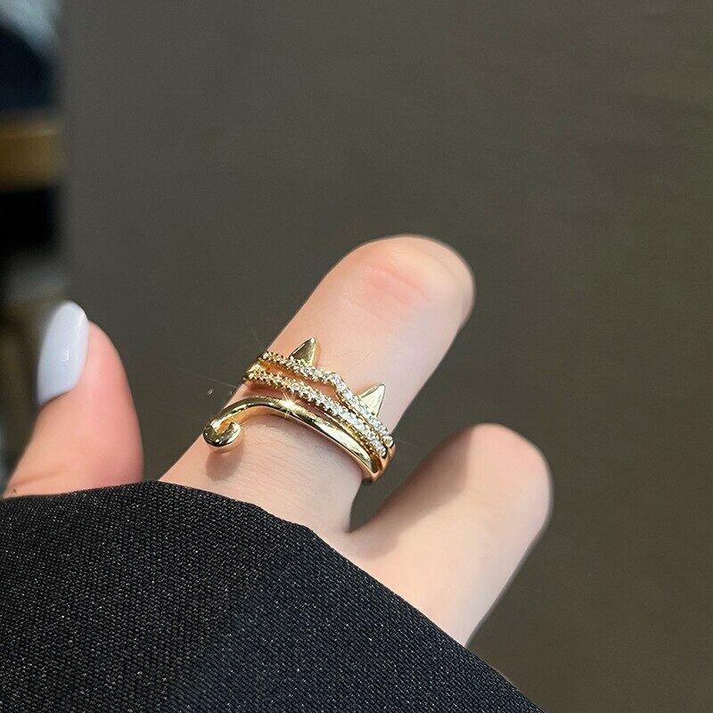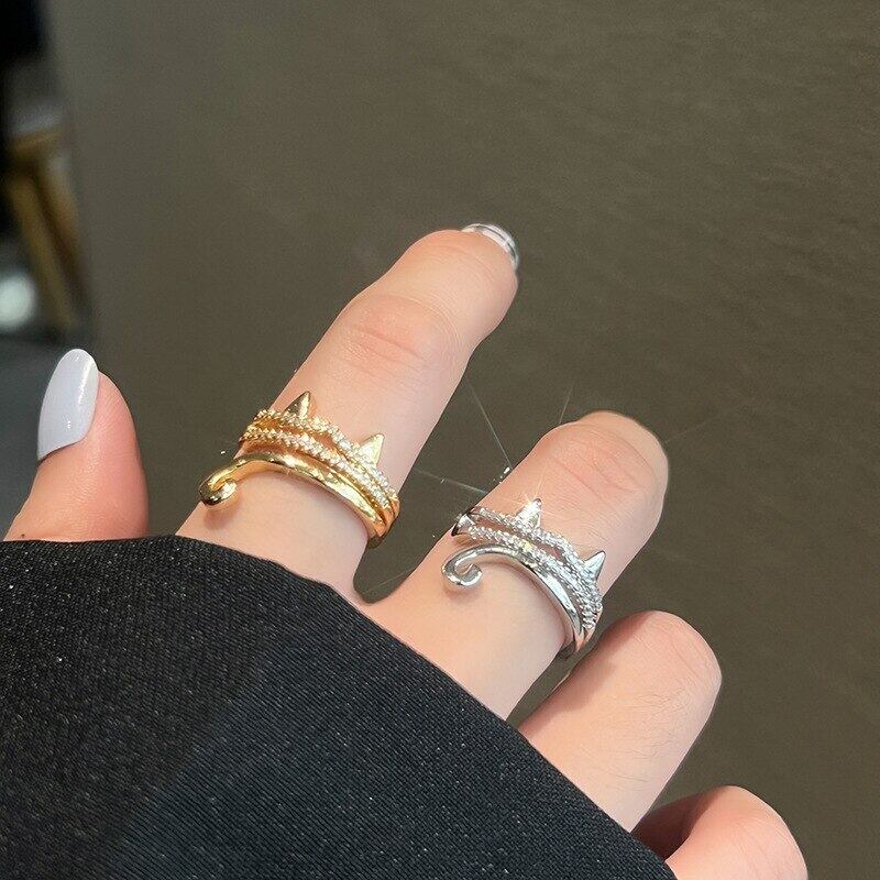 シルバーカラークリエイティブワインディング手作りリング女性カップルトレンドパーティーシャイニージルコンかわいい猫指ジュエリーギフト 大人ガーリー スウィート キュート カジュアル 指輪 銀 Liv77756190067