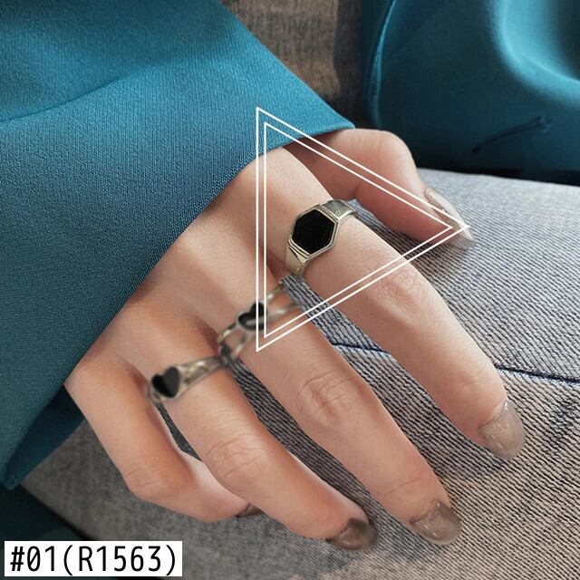 LIVVY シンプルなブラックハート釉薬シルバーカラーリング女性カップルパンクパーティージュエリーギフト 指輪 銀 Liv71621408543