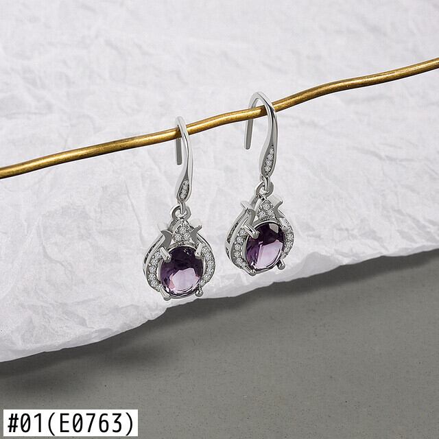 LIVVY シルバーカラーパープルカラークリスタルブラブライヤリング女性ガールレトロフレンチラグジュアリージュエリーギフト 指輪 銀 Liv32260693967
